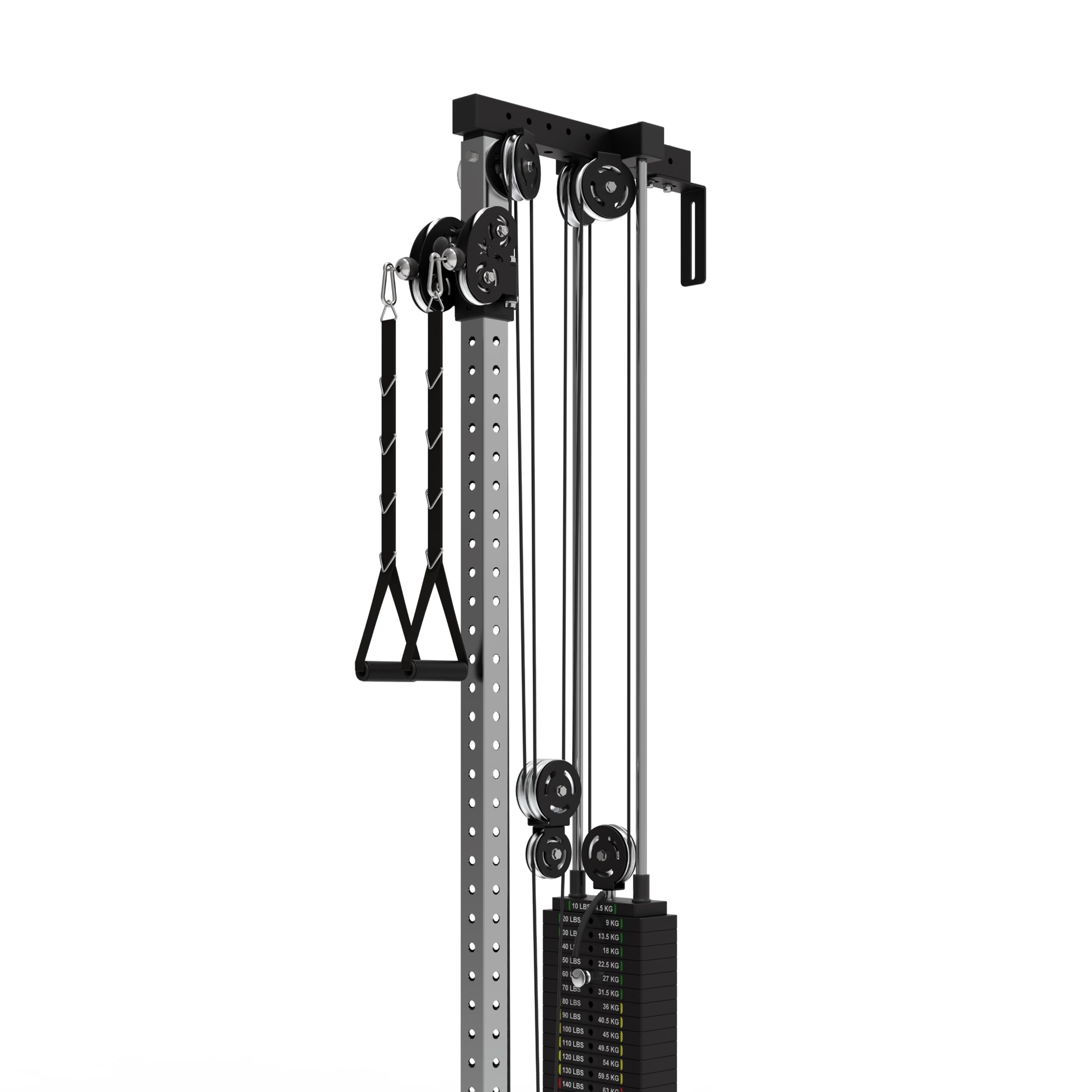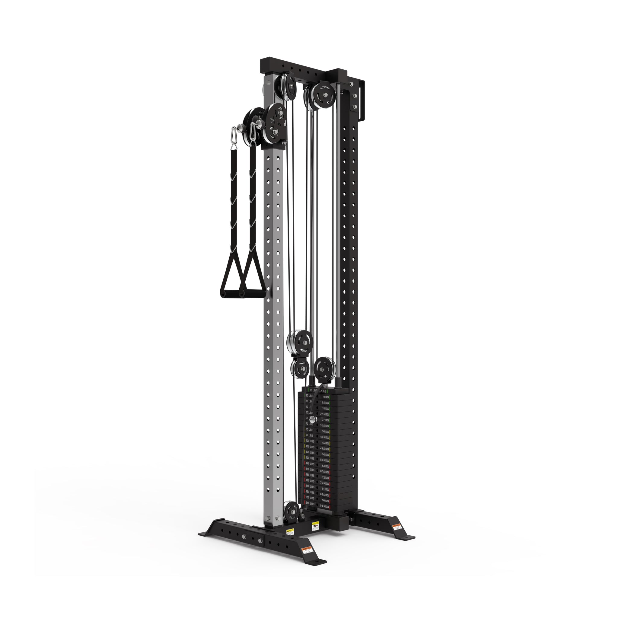 The 80.75” height fits great in basements or mounted on ≥ 84” racks. Meanwhile, the 90” height is ideal for taller users, increasing the range of motion for exercises like tricep pushdowns.