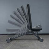 The Buzz-Saw Bench features a ladder-style back adjustment with clearly visible, laser-etched angle markings. This allows for fast setup, repeatable positioning, and accurate progression when programming incline or shoulder movements.