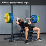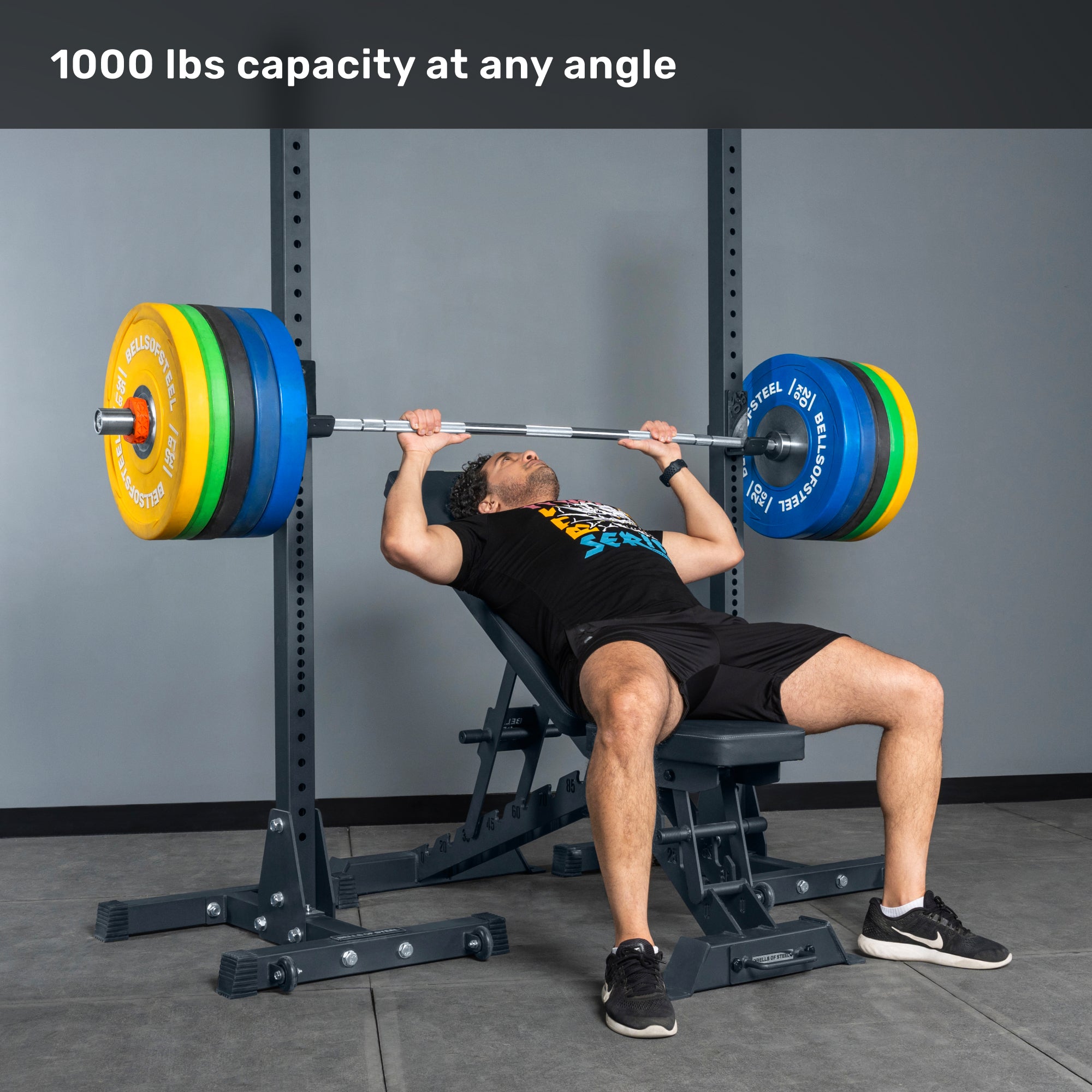 Built from thick 11-gauge steel with reinforced welds to handle anything from beginner presses to elite powerlifting loads.