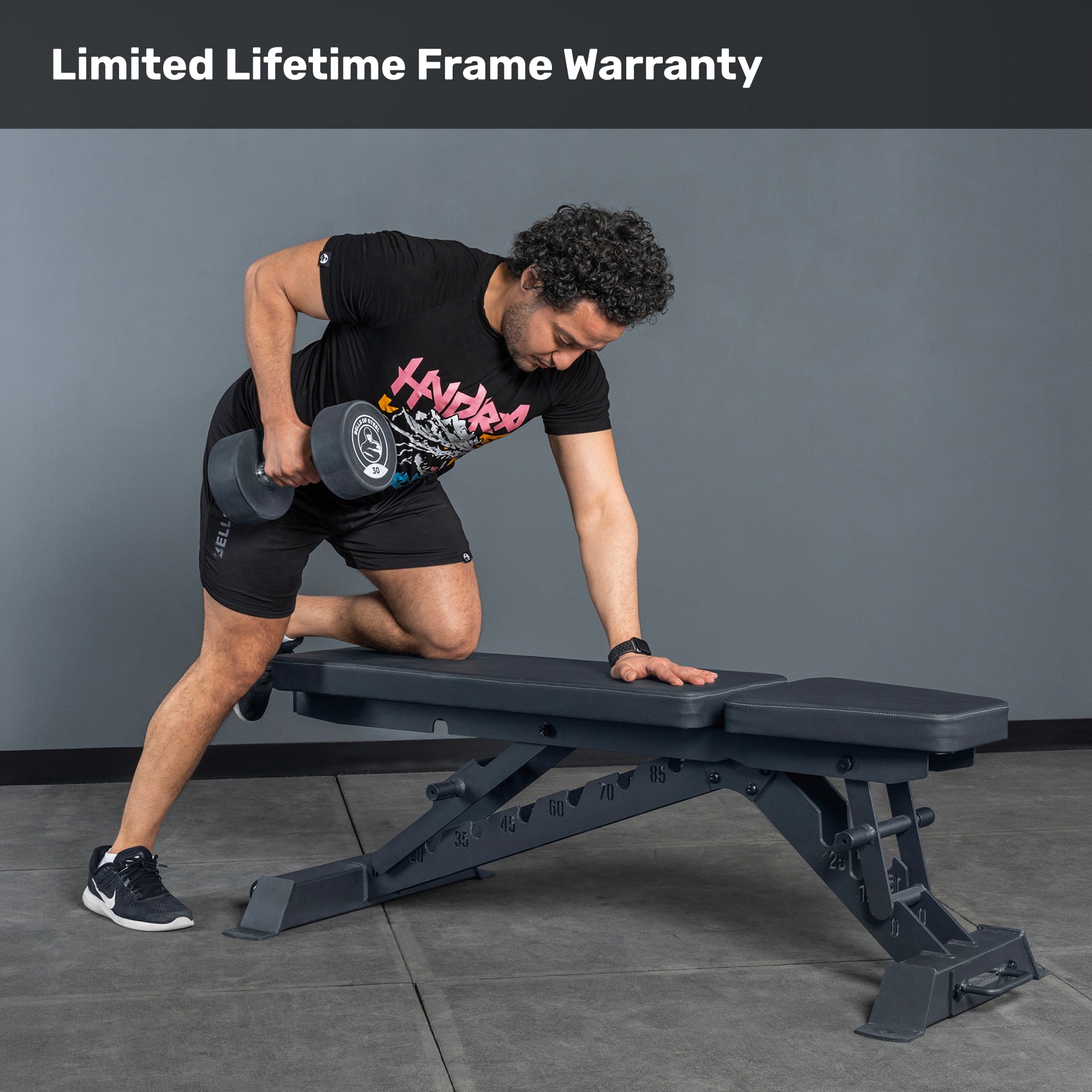 The Buzz-Saw stabilizer and wide front foot eliminate wobble during heavy pressing, leg drive, and dynamic lifting. Built to stay rooted so your strength, not the bench, does the work.