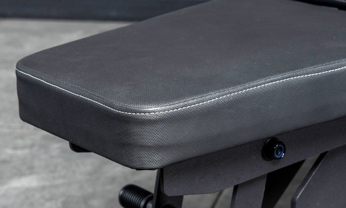 The bench pad uses a high-density foam core wrapped in a textured, grippy upholstery that resists slipping during leg drive and high-incline angles. Hardware tolerances are intentionally tight to minimize rattle, squeaks, and play over time.
