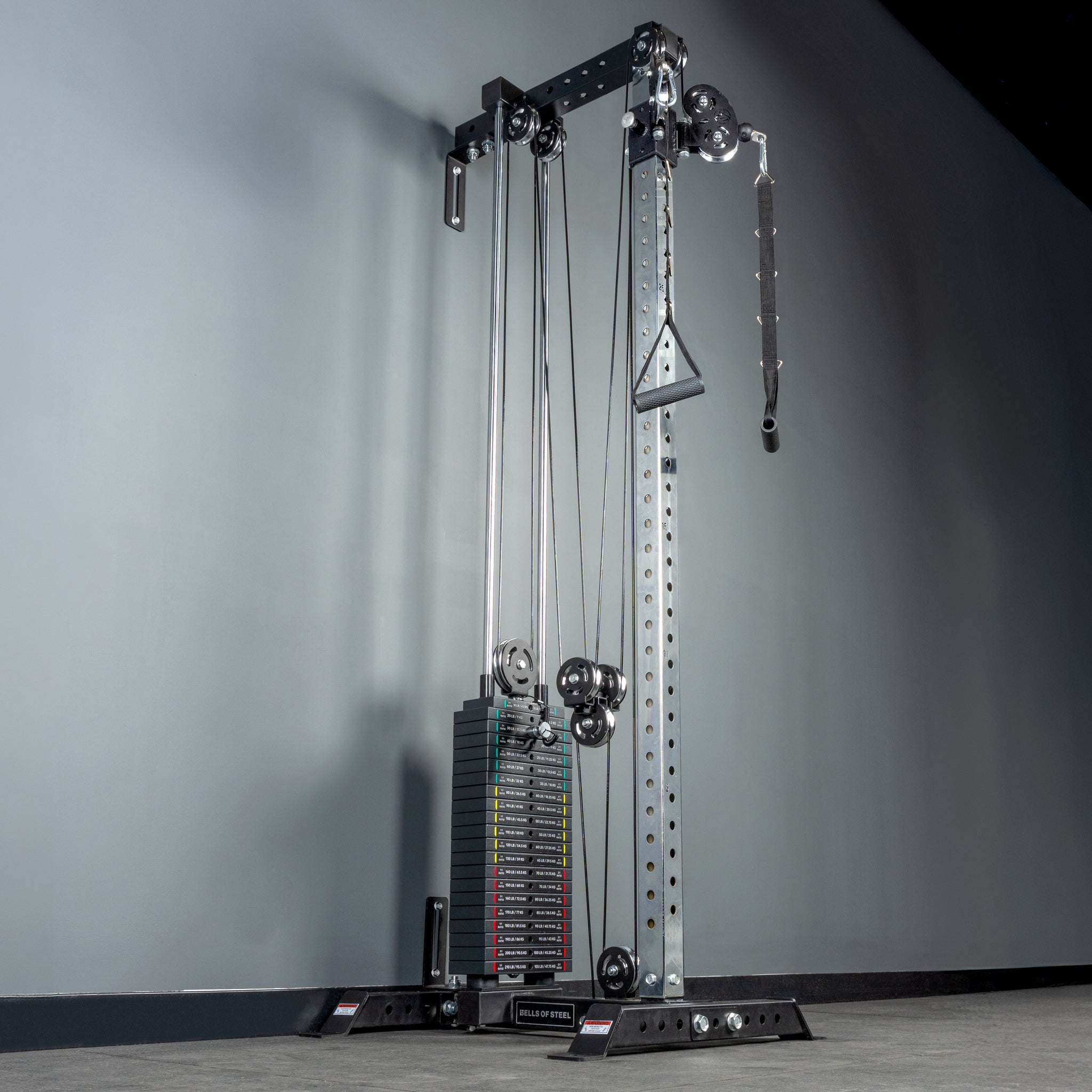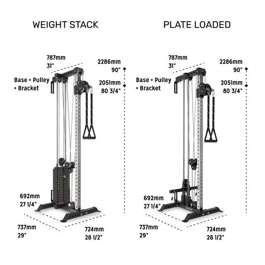 The 80.75” height fits great in basements or mounted on ≥ 84” racks. Meanwhile, the 90” height is ideal for taller users, increasing the range of motion for exercises like tricep pushdowns.