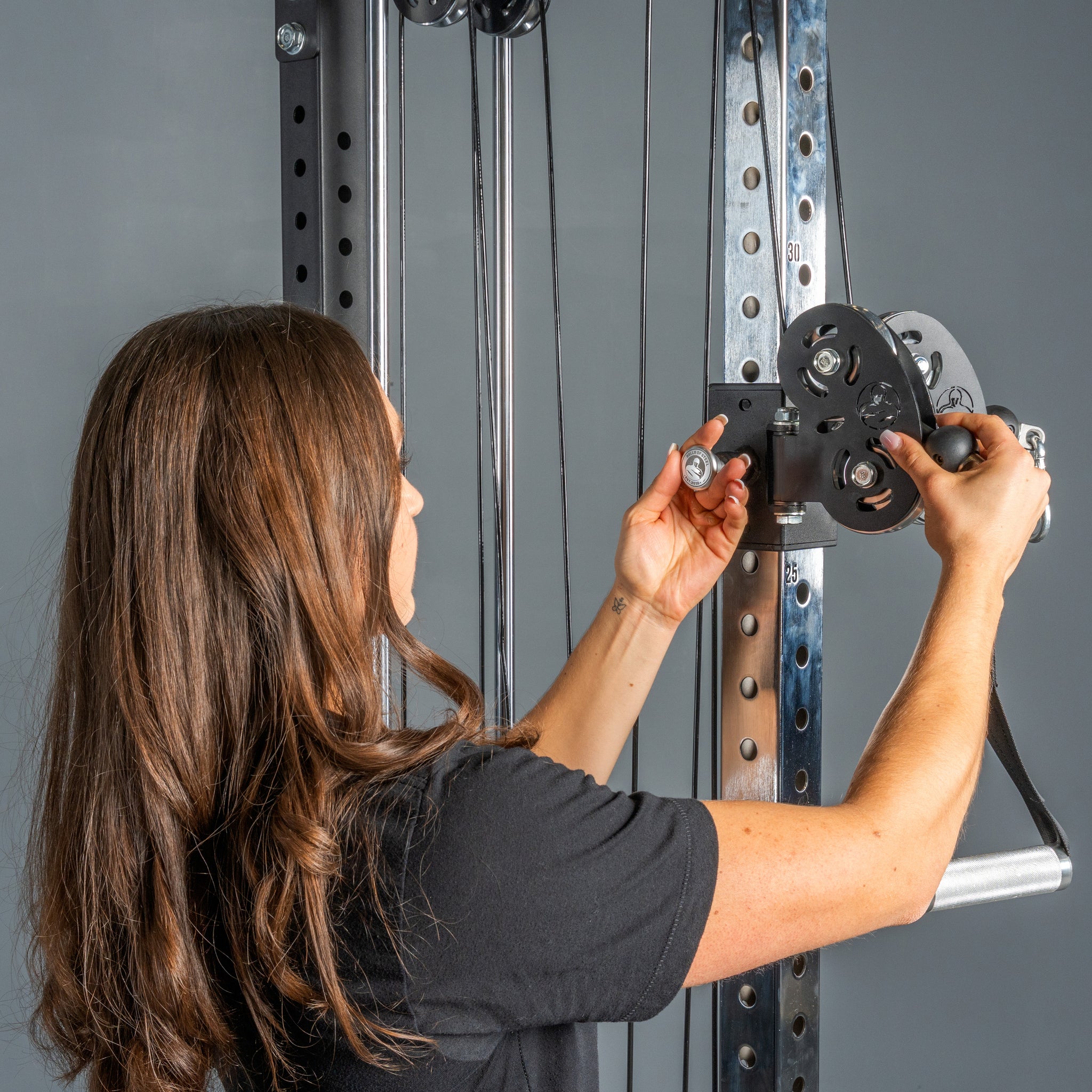 Dual Nylon Adjustable Handles on the upright with 30+ height settings create... 30, carry the 1...endless possibilities! And with the 2-1 Cable Adapter (included with both versions already), connect both cables to upgrade the pull ratio from 2:1 to an incredible 1:1 ratio for heavy rows and more.