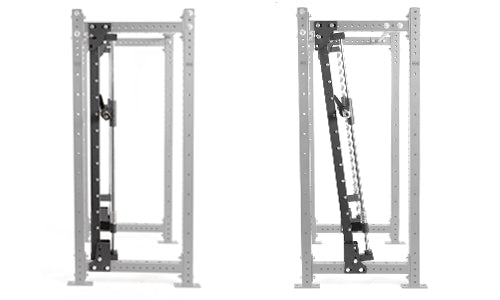 No need for a standalone strength machine. This attachment can be mounted inside your rack for massive space savings. Or attach it to the outside, sitting just 10" off your uprights! This saves room for more important things — like perfecting your front double-biceps pose.