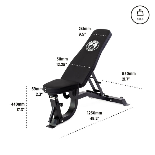 Economical yet effective, the Adjustable Utility Bench is a leaner, cost-effective alternative to the beefy Buzz-Saw Bench or fan-favorite Flat/Incline/Decline Bench.