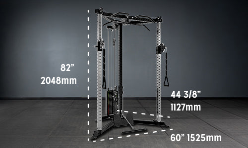 Unlock hundreds of cable and barbell exercises within a single footprint with the All-in-One Trainer! This unit combines the cable versatility of a functional trainer with the barbell functionality of a squat stand in a space-conscious footprint.