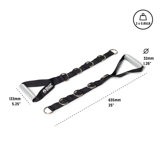 IMPORTANT: Requires carabiners (not included by default) for use on your cable machine.