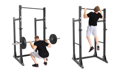 With the flat foot support system, you won't have to bolt your rack into your floor (or hire a contractor). The larger contact surface area makes the rack sturdier for racking/unracking your bar, during pull-ups, and when doing dips.